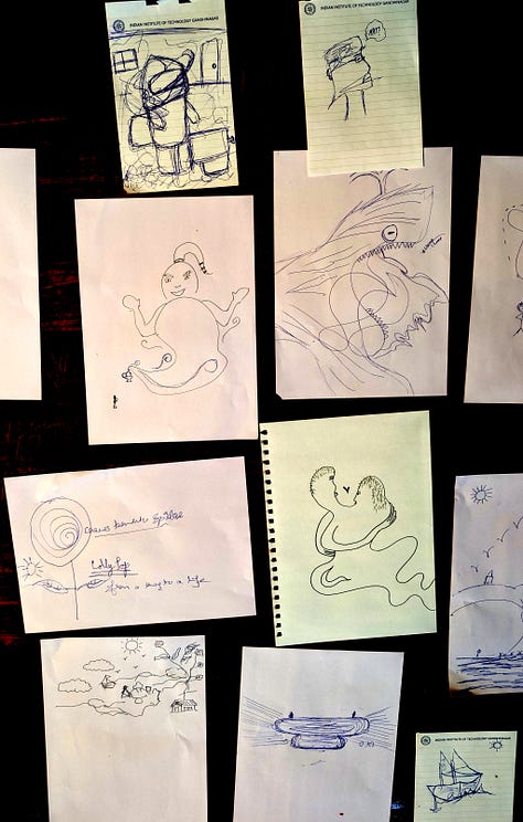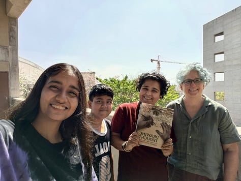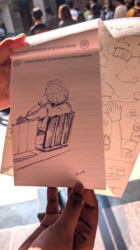 I arrived at IITGN in time for the Curiosity Conference 2026, and I am staying for four weeks as Scholar in Residence. The conference was organized by Argha Manna ( cancer researcher turned comics artist) and Jaison Manjaly (professor of philosophy and cognition.) It brought together artists, researchers, educators, philosophers, science researchers, and communicators from across India as well as local college and high school students. Everyone seemed happy to be there. I don’t know who else felt as I did, that gratification that comes from finding people who also have been working at the boundary between art and science, perhaps a little lonely for it, suddenly not alone.