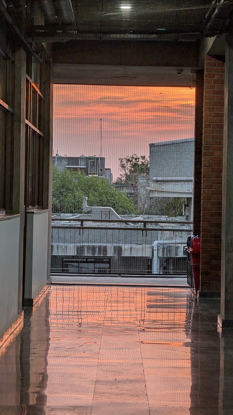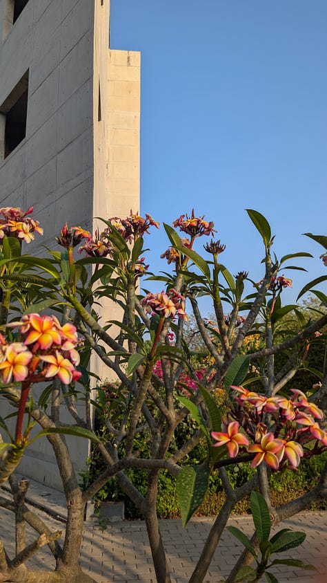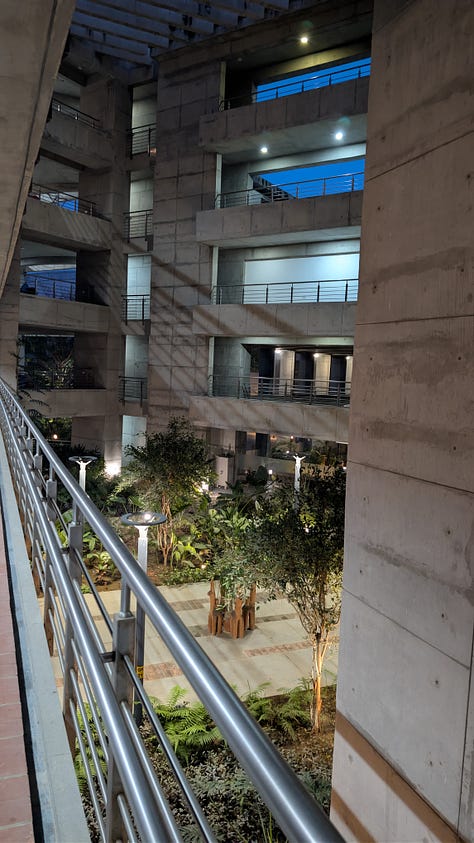 The campus of IIT Gandhinagar itself is a kind of argument. Interdisciplinarity at IITGN is built into the physical structure. Offices don’t cluster by department. Labs are intermingled. The architecture is full of acute angles and unexpected passages, designed, I’m told, to get you lost on purpose. I can confirm it works. I keep thinking I know where I am and then find myself heading in exactly the wrong direction. Spatially, intellectually, linguistically, I have been lost in all three arenas since I arrived. Conversations pull me in, I lose the thread, and then sometimes manage to pick it up again. Sometimes, mid-discussion, people shift into Hindi, and I think I should have tried harder to learn at least a little before I came.