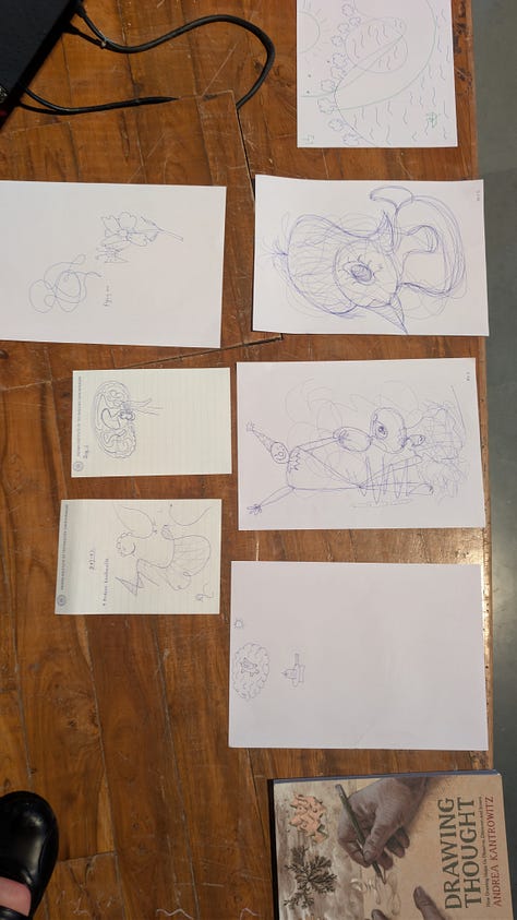 But tonight I feel empty, someone who just showed up with a sketchbook and a jet-lagged brain and a series of half-formed ideas. But maybe that is okay. I often say drawing as a form of inquiry, a way of following a line toward what you don’t yet know you want to find out. You have to not-know first. It’s important to allow yourself to get lost.